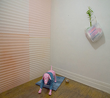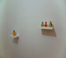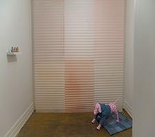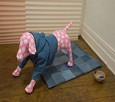 SPAYSKY FINE ART GALLERY LLC is pleased to present for its third exhibition, Appleface, new works from Detroit-based artist Crystal Palmer. In the final show preceding the gallery’s re-location, Palmer presents an installation of new works in media ranging from denim to ceramic. With consumer displays and Pavlovian triggers as her inspiration, Palmer constructs an alluring new composition for the small gallery space. Appleface implements diverse materials, colors, and textures as tools to entice and attract the viewer, subtly mimicking the tools of merchandising. The exhibition is on display from April 1st through the 29th. Opening reception will take place Saturday April 1st from 6-9 pm. Spaysky Fine Art Gallery LLC is located in a room at 3875 Norwalk Street, Hamtramck MI. Parking on the is available on the street. Please enter through the back porch. Open hours during the run of the show are Saturdays from 2-7pm or by appointment. Email spaysky_fine_art_gallery.llc@yahoo.com for further information.